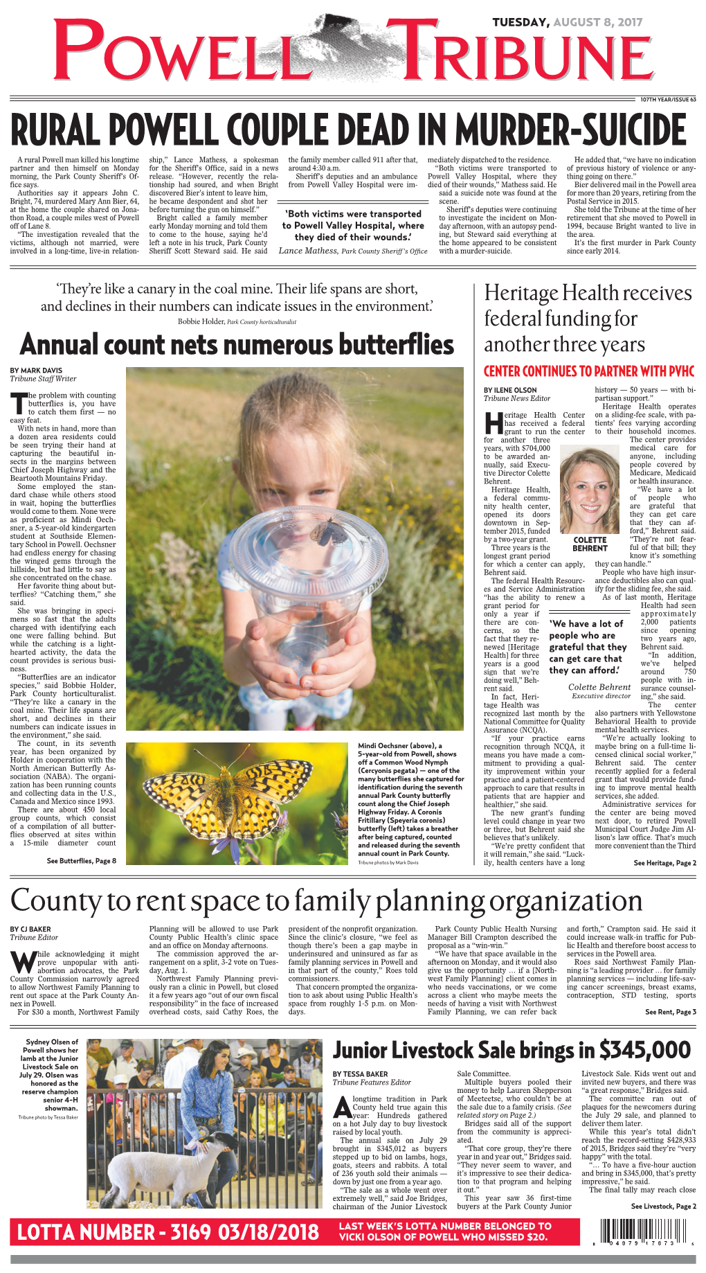 TUESDAY, JUNE 5, 2018 108TH YEAR/ISSUE 45 CANDIDATES POUR IN AT LAST MINUTE FOR LOCAL OFFICES BY CJ BAKER 16 partisan positions up for Tribune Editor election, and Democrats are running for just three of those he final days of the filing offices. period for August’s pri- Tmary election brought an PARK COUNTY influx of candidates — and at A total of 11 Republicans least one big twist. have lined up to run for Races for may- three seats up for or of Powell and grabs on the Park the Powell City County Commis- Council heated 2018 sion. Incumbent up, with sev- Commissioner eral contend- Joe Tilden is ers signing up ELECTION seeking a third on Wednesday, term on the Thursday and PRIMARY ELECTION board, while 10 Friday. It means others are look- that, in a change AUGUST 21 ing to join or re- from recent elec- place him. They’re tions, voters will have listed below by the dates multiple options when they they filed: choose three council members • Cathy Marine, a retired and a mayor this year. educator who lives in rural Meanwhile, state Rep. Scott Powell. Debris flows down the side of Hunter Peak in Crandall just above the Cooley family cabin on Squaw Creek Road on Thursday. The mudslide Court, R-Cody, shook up the lo- • Dossie Overfield, a long- totaled two cabins and threatens others in the area. Tribune photo by Mark Davis cal political scene on Friday by time Cody school board mem- announcing that he will not be ber and former manager of seeking reelection to the state the Northwest Rural Water CABINS SWEPT AWAY IN House and will instead run for District. -