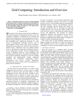 SORCER: COMPUTING AND METACOMPUTING INTERGRID Michael Soblewski Texas Tech University, Lubbock, TX, U.S.A. [email protected] Keywords: Metacomputing, metaprogramming, grid computing, service-oriented architectures, service-oriented programming. Abstract: This paper investigates grid computing from the point of view three basic computing platforms. Each platform considered consists of virtual compute resources, a programming environment allowing for the development of grid applications, and a grid operating system to execute user programs and to make solving complex user problems easier. Three platforms are discussed: compute grid, metacompute grid and intergrid. Service protocol-oriented architectures are contrasted with service object-oriented architectures, then the current SORCER metacompute grid based on a service object-oriented architecture and a new metacomputing paradigm is described and analyzed. Finally, we explain how SORCER, with its core services and federated file system, can also be used as a traditional compute grid and an intergrid—a hybrid of compute and metacompute grids. 1 INTRODUCTION leveraging the dynamically federating resources. We can distinguish three generic grid platforms, The term “grid computing” originated in the early which are described below. 1990s as a metaphor for accessing computer power Programmers use abstractions all the time. The as easy as an electric power grid. Today there are source code written in programming language is an many definitions of grid computing with a varying abstraction of the machine language. From machine focus on architectures, resource management, language to object-oriented programming, layers of access, virtualization, provisioning, and sharing abstractions have accumulated like geological strata. between heterogeneous compute domains. Thus, Every generation of programmers uses its era’s diverse compute resources across different programming languages and tools to build programs administrative domains form a grid for the shared of next generation. -