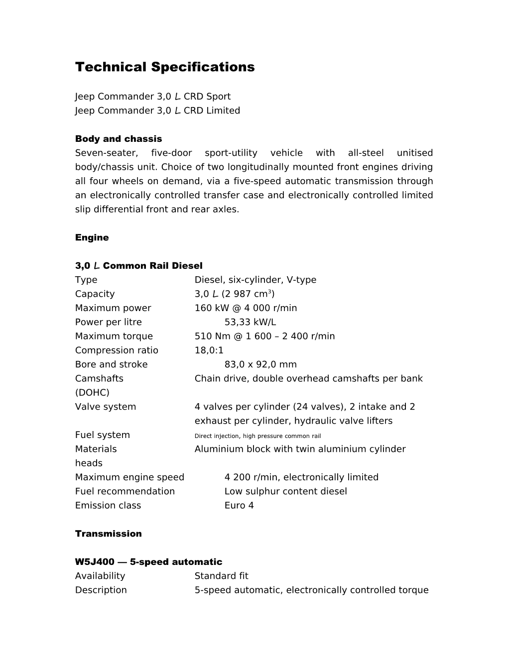 Jeep Commander 3,0 L CRD Sport Jeep Commander 3,0 L CRD Limited