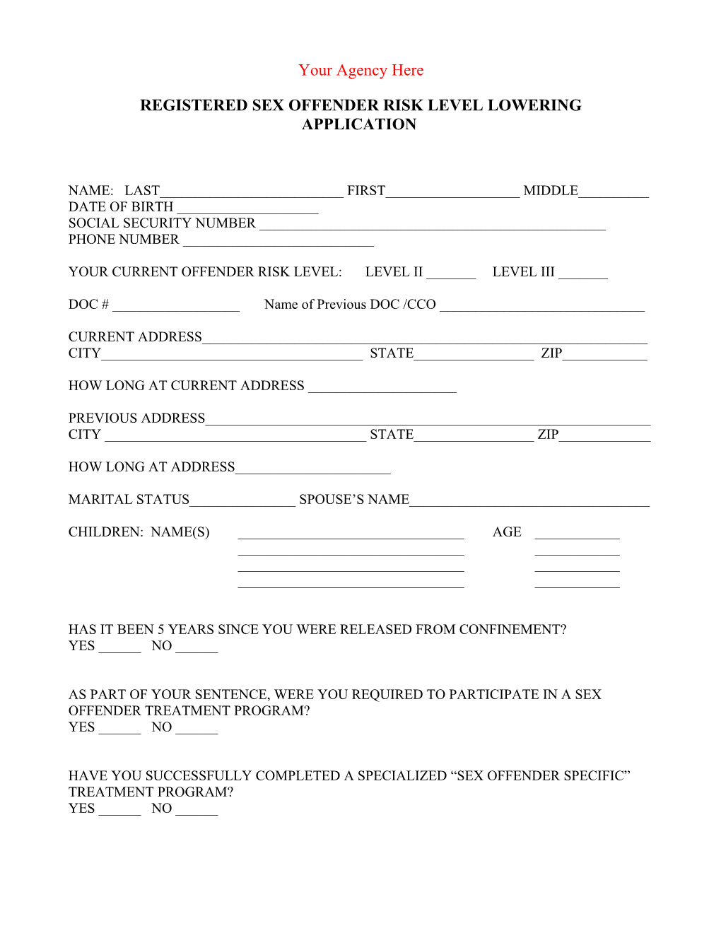 REGISTERED SEX OFFENDER RISK LEVEL LOWERING APPLICATION