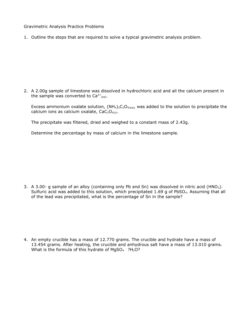 1. Outline the steps that are required to solve a typical gravimetric analysis problem.