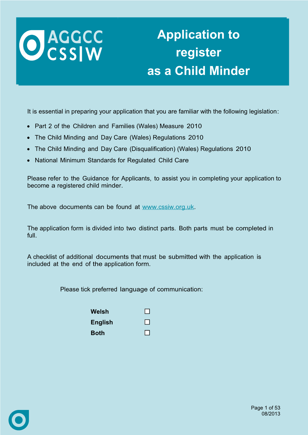 Please refer to the Guidance for Applicants, to assist you in completing your application to become a registered child minder.
