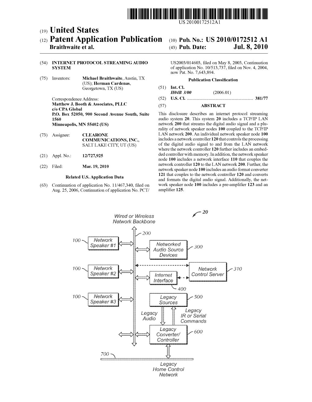 US 2010/0172512 A1 Braithwaite Et Al