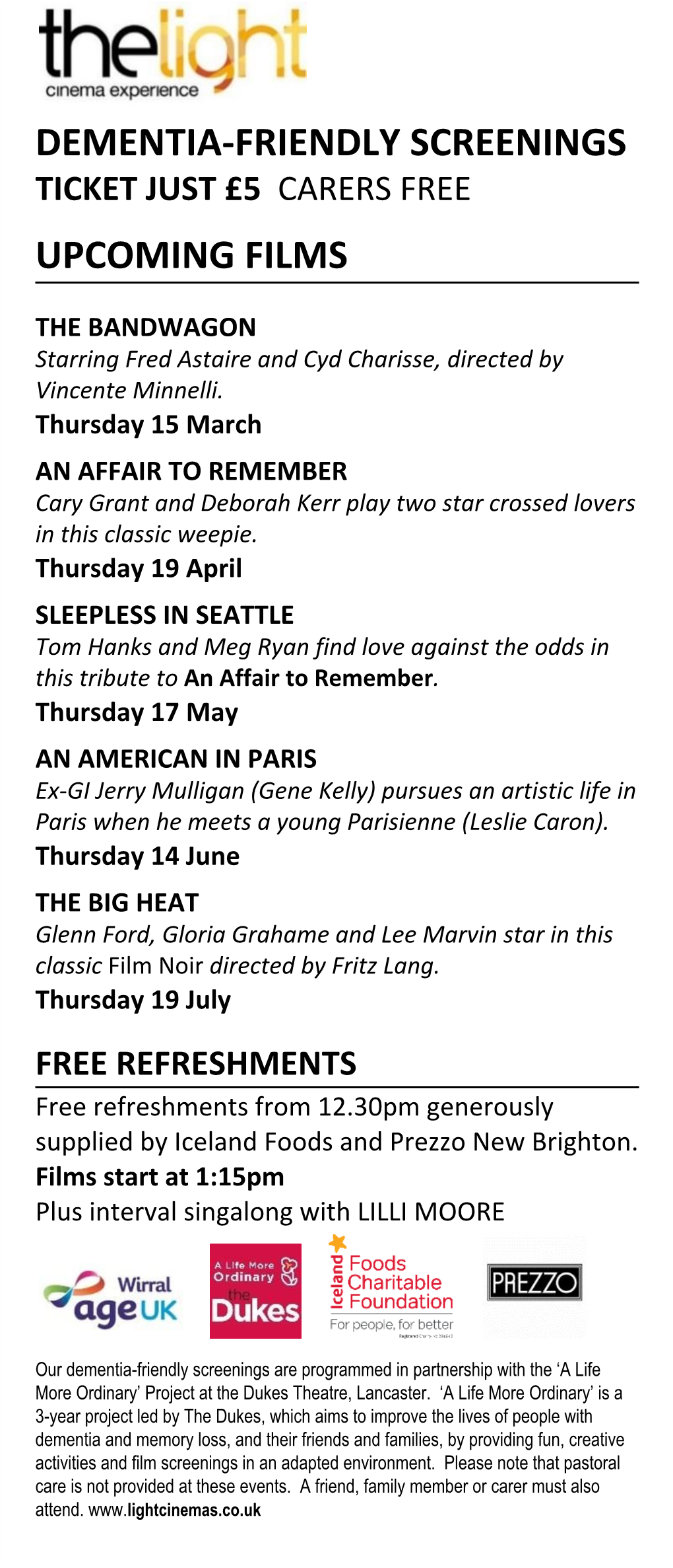 Dementia-Friendly Screenings Upcoming Films Dementi