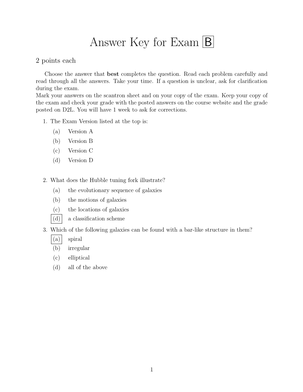 Answer Key for Exam B