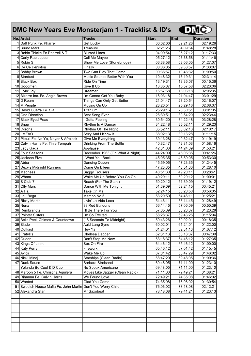 New Years Eve Monsterjam 1 - Tracklist & ID's