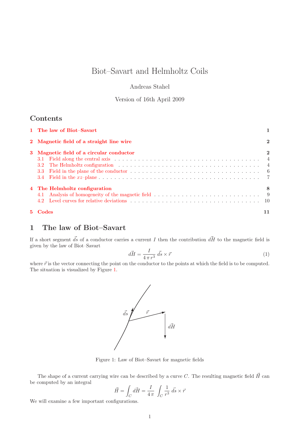 Biot–Savart and Helmholtz Coils