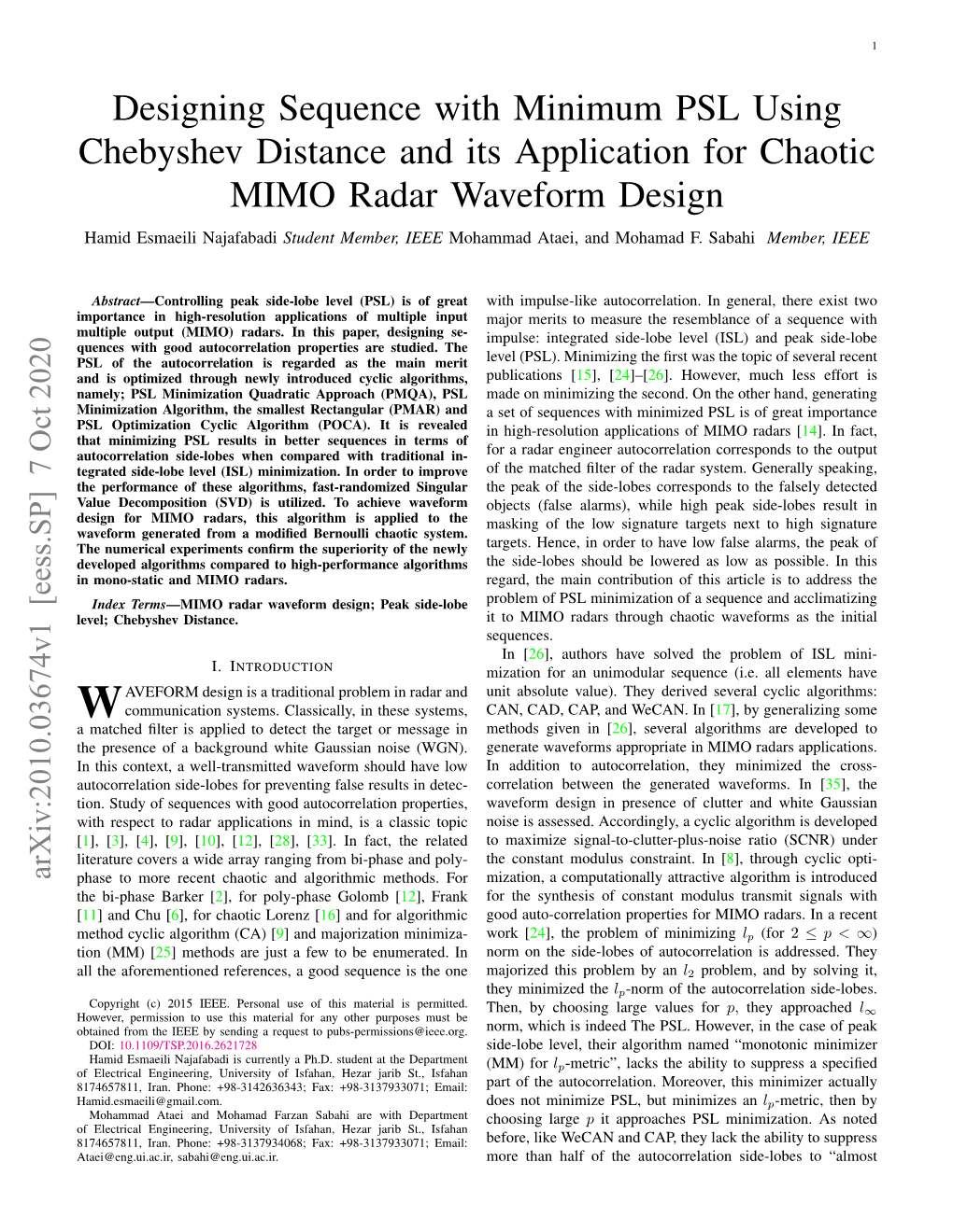 Designing Sequence with Minimum PSL Using Chebyshev Distance and Its Application for Chaotic MIMO Radar Waveform Design
