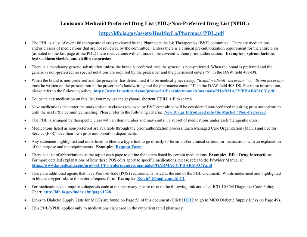 PDL)/Non-Preferred Drug List (NPDL