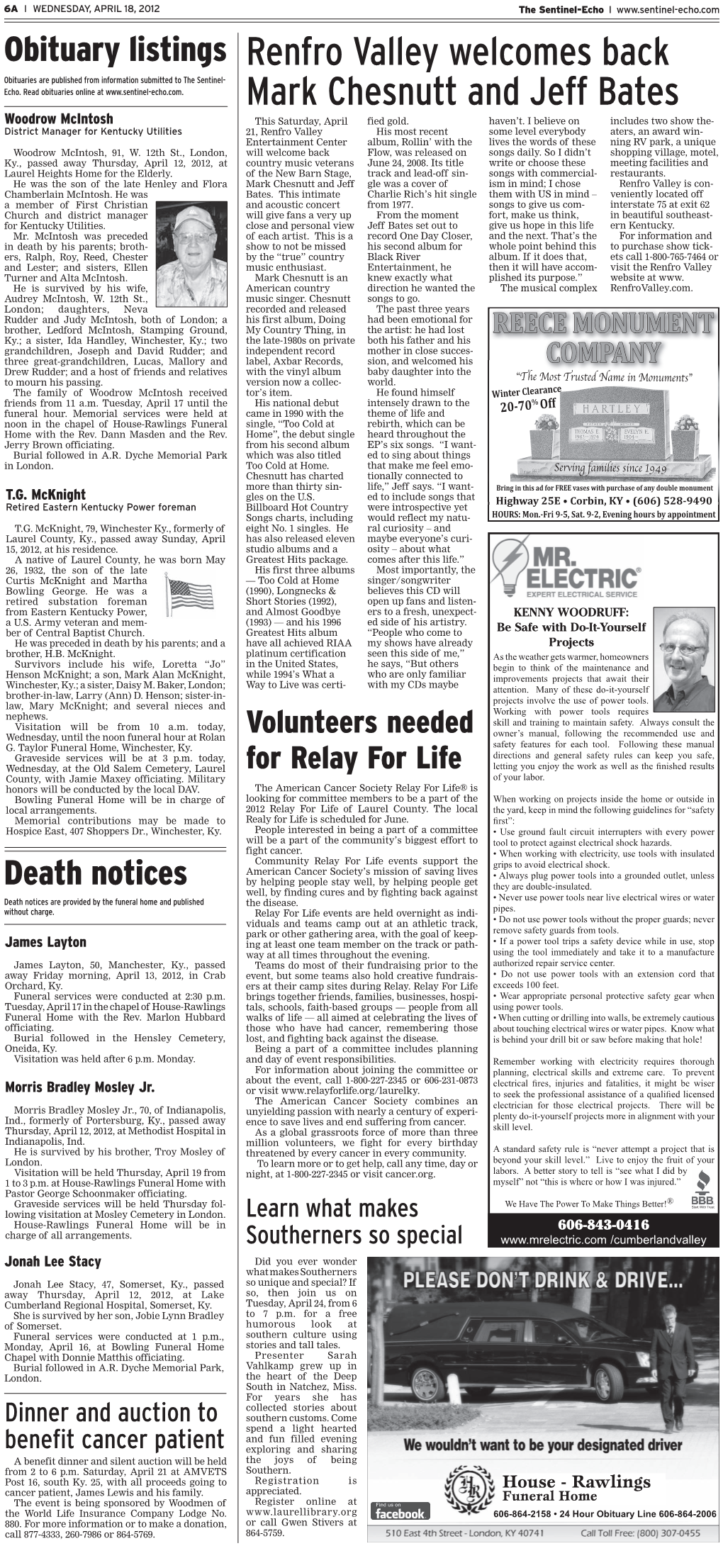 page 1 Monday, May 11, 2009 Mellencamp said, "Those records are not Mellencamp & perfectly made—they're pretty raw. The emotion they capture is the essence. People Fairchild Deliver Hope are not alone in their loneliness. If people by David M. Ross get any bit of that message from the video "It struck me that Karen Fairchild's it would be fantastic." View the video at voice not only sounds good in Little Big Town http://twurl.nl/i2ucpq but also works well with mine," says John Mellencamp regarding the pair's newly released duet video "A Ride Back Home." Shot Wariner Previews on the campus of Indiana University, most of the shoot resides in and around the pews Atkins Tribute of Beck Chapel. "When he writes something by Peter Cronin it's as though he's speaking it, so it's a bit of On June 23, award-winning singer/ a challenge," says Fairchild. "I didn't want songwriter/guitarist/producer Steve to mess that up or get in the way, so I call it Wariner will release c.g.p., My Tribute to kind of 'chasing' John." Chet Atkins, a musical salute to his old Inspired from '30s and '40s American folk friend Chet Atkins. Recorded for Wariner’s songs, Mellencamp sees the lyric's darkness SelecTone Records, the 11-song collection as uplifting, delivering a message of hope. combines Atkins classics with Wariner Discussing great country folk recordings from originals played in the style of the late six- the Carter Family through Hank Williams string legend. Wariner has recorded a series of webisodes to introduce listeners to each track. -