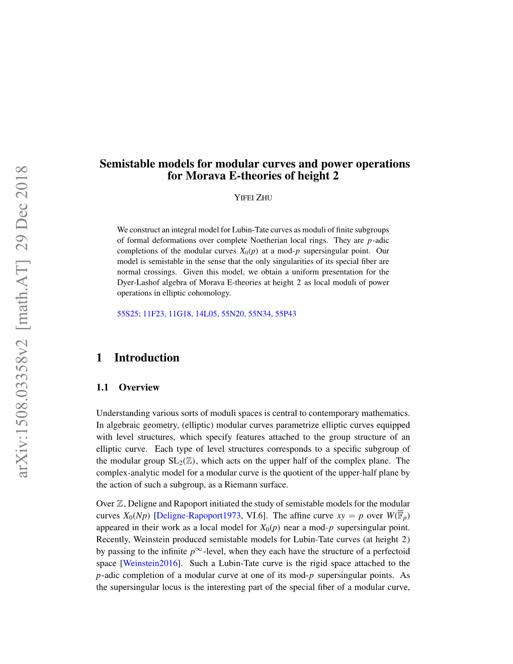 CONGRUENCES BETWEEN MODULAR FORMS FRANK CALEGARI Contents 1. Basics 1 1.1. Introduction 1 1.2. What is a modular form? 4 1.3. The q-expansion priniciple 14 1.4. Hecke operators 14 1.5. The Frobenius morphism 18 1.6. The Hasse invariant 18 1.7. The Cartier operator on curves 19 1.8. Lifting the Hasse invariant 20 2. p-adic modular forms 20 2.1. p-adic modular forms: The Serre approach 20 2.2. The ordinary projection 24 2.3. Why p-adic modular forms are not good enough 25 3. The canonical subgroup 26 3.1. Canonical subgroups for general p 28 3.2. The curves Xrig[r] 29 3.3. The reason everything works 31 3.4. Overconvergent p-adic modular forms 33 3.5. Compact operators and spectral expansions 33 3.6. Classical Forms 35 3.7. The characteristic power series 36 3.8. The Spectral conjecture 36 3.9. The invariant pairing 38 3.10. A special case of the spectral conjecture 39 3.11. Some heuristics 40 4. Examples 41 4.1. An example: N = 1 and p = 2; the Watson approach 41 4.2. An example: N = 1 and p = 2; the Coleman approach 42 4.3. An example: the coefficients of c(n) modulo powers of p 43 4.4. An example: convergence slower than O(pn) 44 4.5. Forms of half integral weight 45 4.6. An example: congruences for p(n) modulo powers of p 45 4.7. An example: congruences for the partition function modulo powers of 5 47 4.8. -
