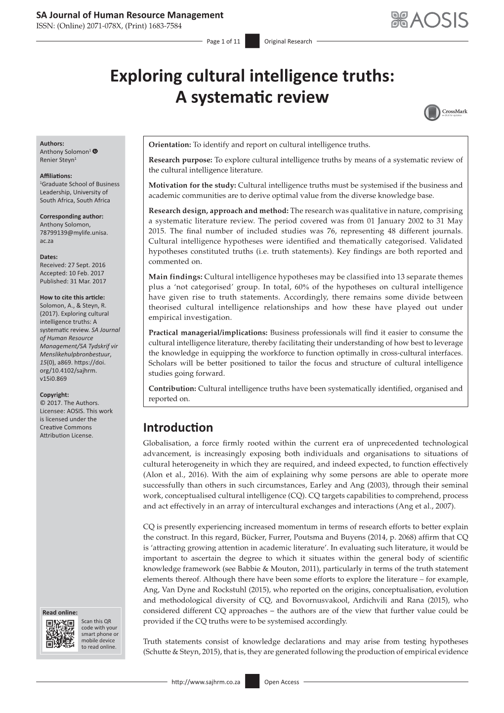 Exploring Cultural Intelligence Truths: a Systematic Review