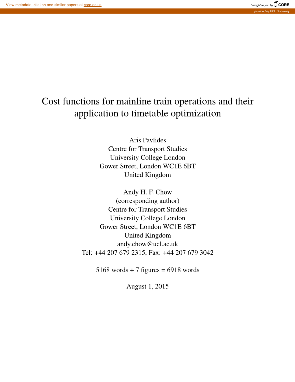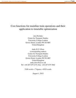 Cost Functions for Mainline Train Operations and Their Application to Timetable Optimization