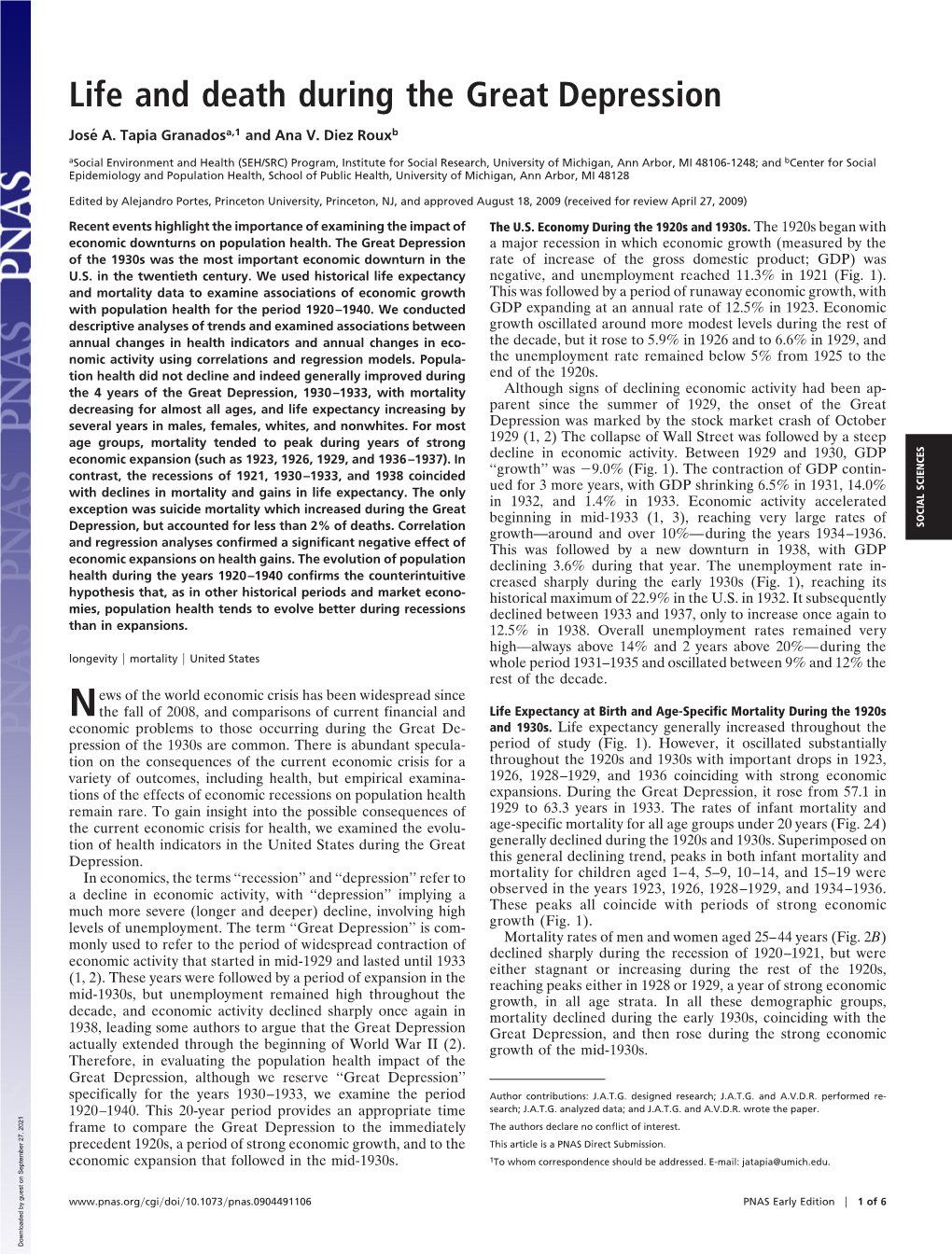 Life and Death During the Great Depression