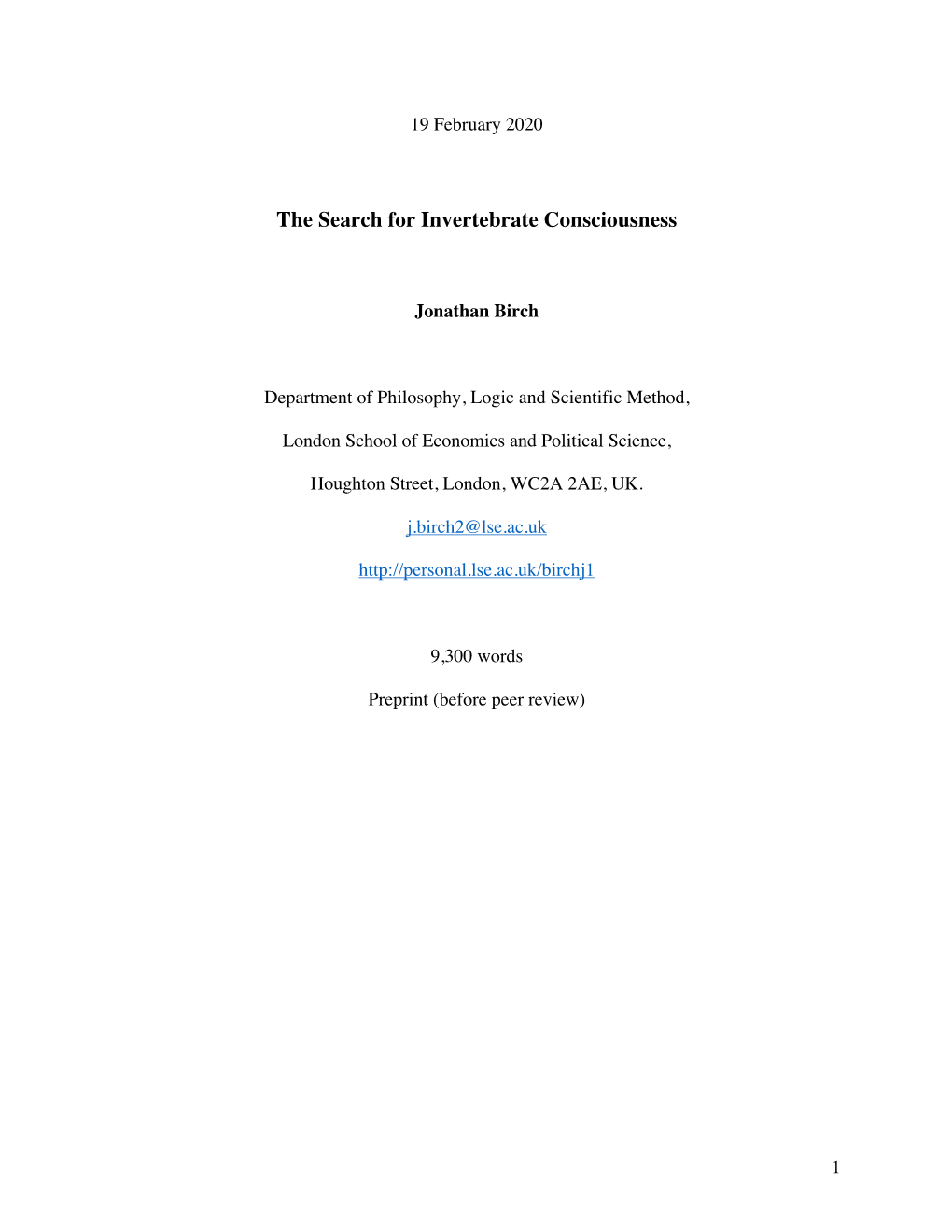 Shanahan, Murray (2016) Consciousness as integrated perception, motivation, cognition, and action. Animal Sentience 9(12) DOI: 10.51291/2377-7478.1145 This article has appeared in the journal Animal Sentience, a peer-reviewed journal on animal cognition and feeling. It has been made open access, free for all, by WellBeing International and deposited in the WBI Studies Repository. For more information, please contact [email protected]. Animal Sentience 2016.122: Shanahan on Klein & Barron on Insect Experience Consciousness as integrated perception, motivation, cognition, and action Commentary on Klein & Barron on Insect Experience Murray Shanahan Department of Computing Imperial College London Abstract: This commentary has two aims: first to clarify the behavioural grounds for the ascription of consciousness to non-human animals (including insects), and second to show how Klein & Barron’s views can be reconciled with the core claims of global workspace theory. Murray Shanahan, Professor of Cognitive Robotics, Imperial College London, is interested in the principles that underlie sophisticated cognition, both as it is found in Nature and as it might be realised artificially. https://www.doc.ic.ac.uk/~mpsha/ 1. Behavioural Hallmarks of Consciousness in Other Animals In due course I’m going to discuss the brains of invertebrates and Klein & Barron’s (K & B, 2016) claim that insects have the capacity for subjective experience. But first I want to talk about the behaviour of cats. What is it that convinces us, without recourse to neuroscience, that we are in the company of a fellow conscious creature when we are with a domestic animal such as a cat? A child might be taken in by doleful eyes and soft fur (features lacking in insects). -