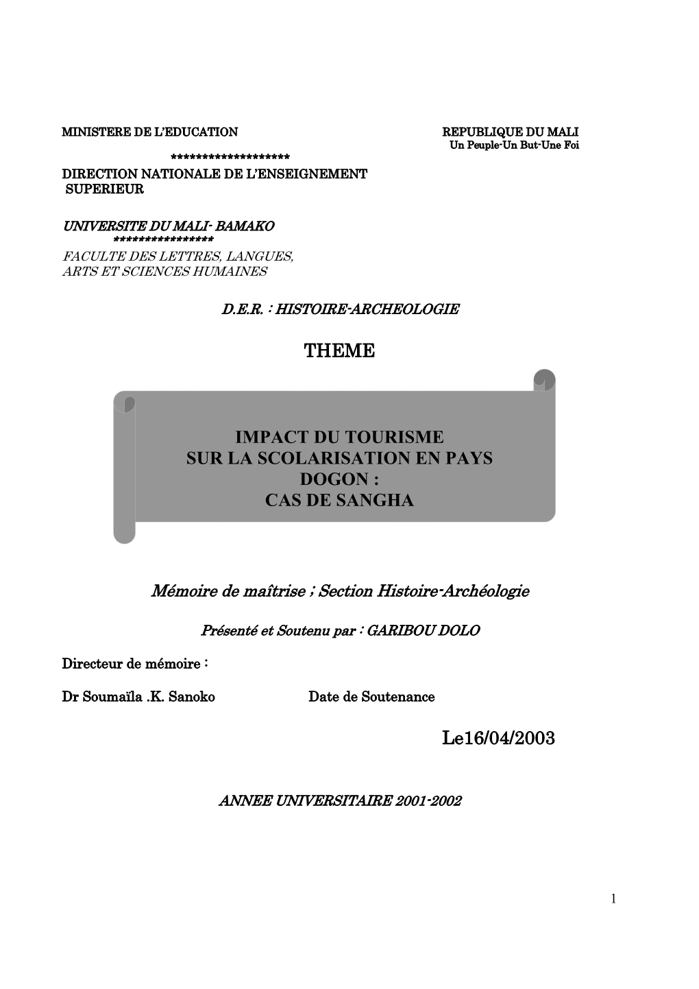 THEME Le16/04/2003 IMPACT DU TOURISME SUR LA