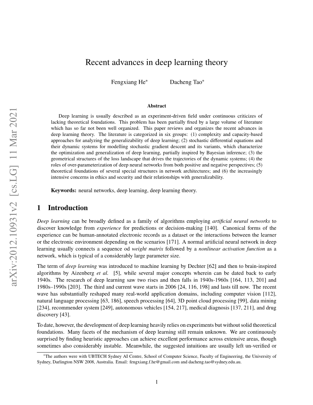 Recent Advances in Deep Learning Theory