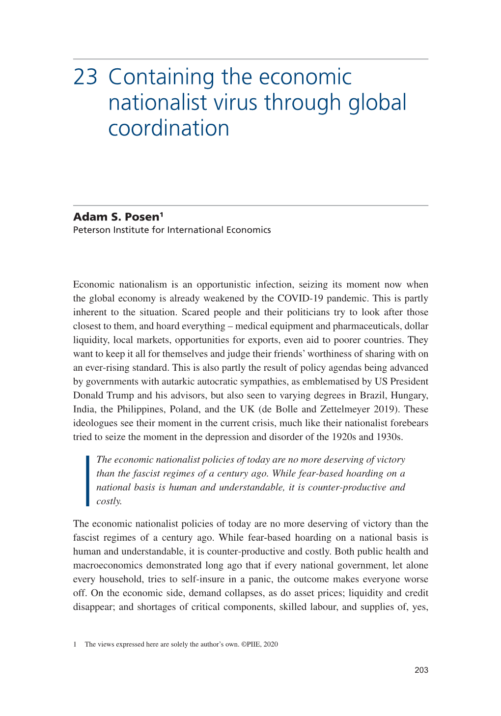 Containing the Economic Nationalist Virus Through Global Coordination