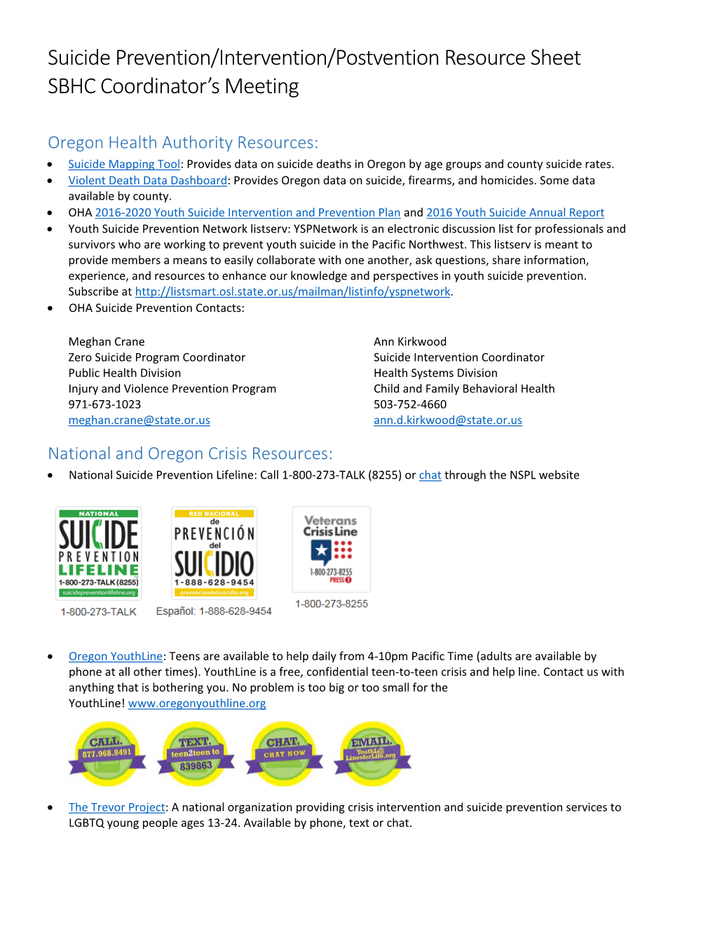 Suicide Prevention Resources