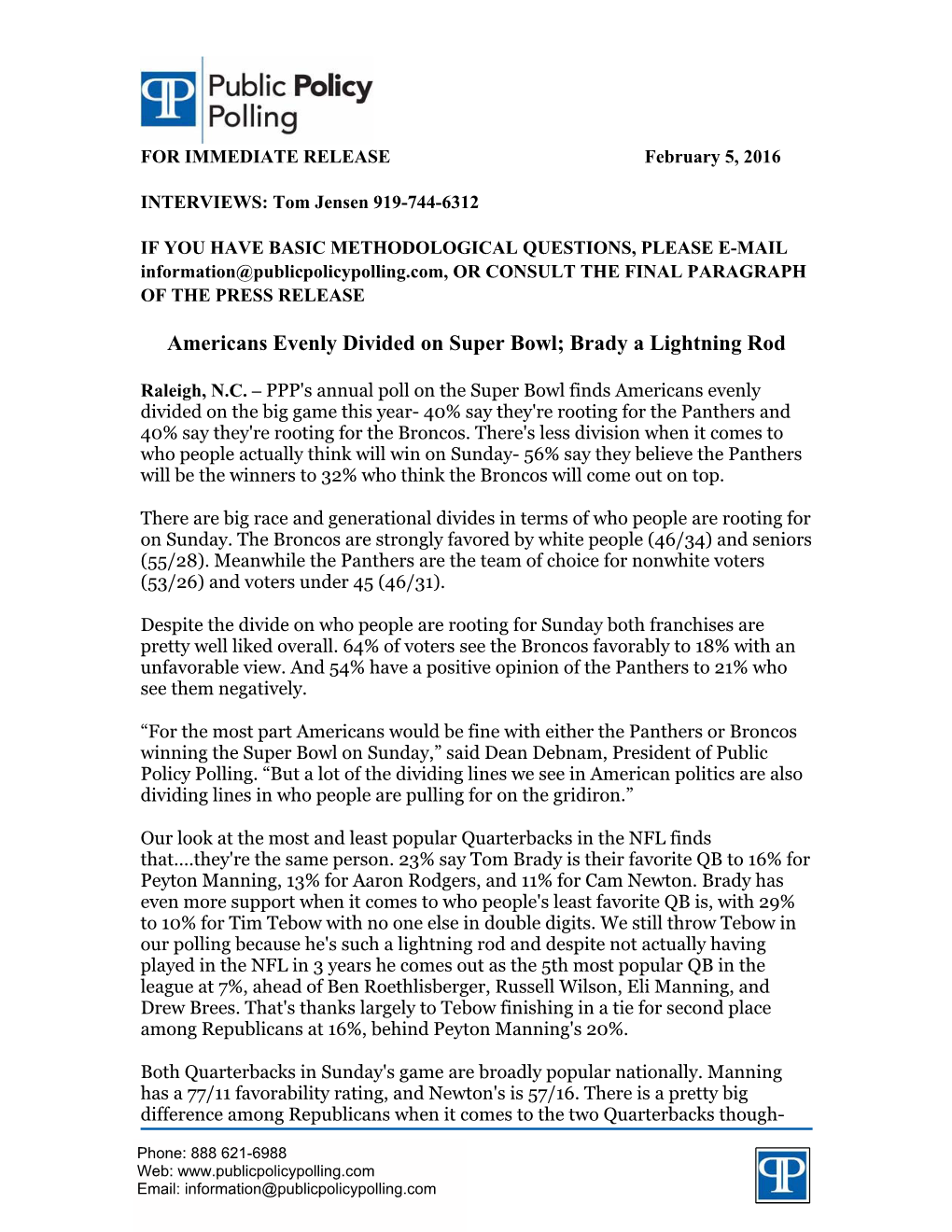 Americans Evenly Divided on Super Bowl; Brady a Lightning Rod