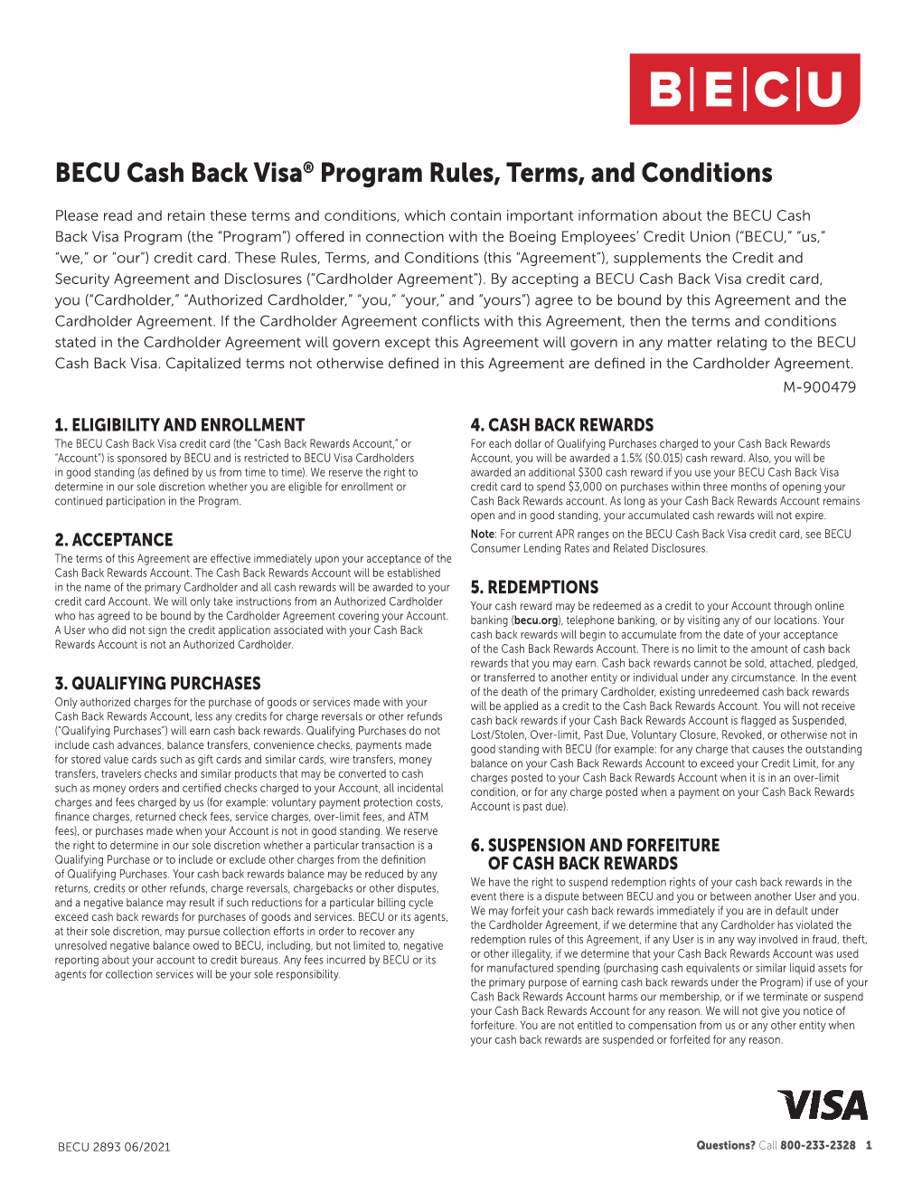 BECU Cash Back Visa Program Rules, Terms, and Conditions