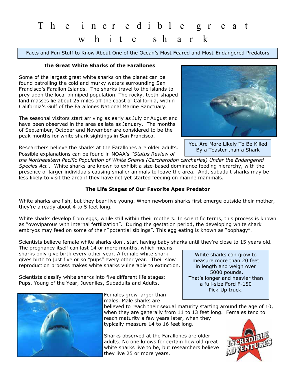 The Incredible Great White Shark
