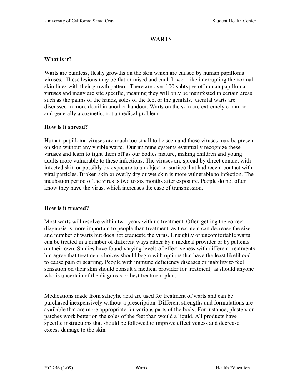 Wart Treatment Skin Warts Common skin warts (also called cutaneous warts) are raised round or oval growths. A wart may be lighter or darker than the skin around it. Some warts may have tiny black dots in them, often called seeds. The dots are small, clotted blood vessels. Warts may occur alone or in larger groups that merge and form patches. You can become infected with the virus that causes warts buy touching another person’s wart. The virus is more likely to infect skin that is injured or softened by water, but it can infect healthy skin as well. It can take up to six months after exposure to the virus for a wart to appear. Who gets skin warts? Skin warts are most common in children and young adults. People who have chronic skin conditions, such as eczema, many have more extensive warts or warts that are difficult to control. Where do warts occur? Skin Warts can occur in the following locations: Common skin warts, also call verruca vulgaris, can occur on any area skin, but are often seen on the fingers, hands knees, and elbows. When common warts are located around the fingernails, they are call periungual warts. Plantar warts are found on the soles of the feet. Flat warts are most commonly found on the back of the hands face, and lower legs. Skin Wart Diagnosis: Skin warts can usually be diagnosed based upon how they look. Skin biopsy or other testing is not usually necessary. Skin Wart Treatment: Treatment of warts depends upon where the wart is located and how much it bothers you. -