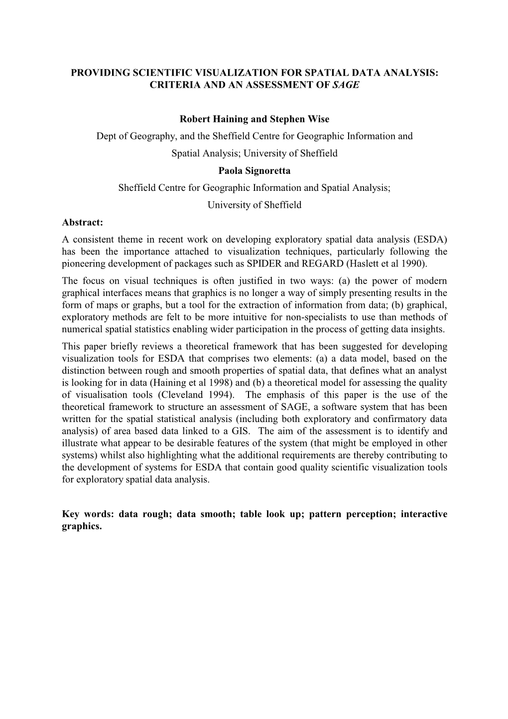Providing Scientific Visualization for Spatial Data Analysis: Criteria and an Assessment of Sage