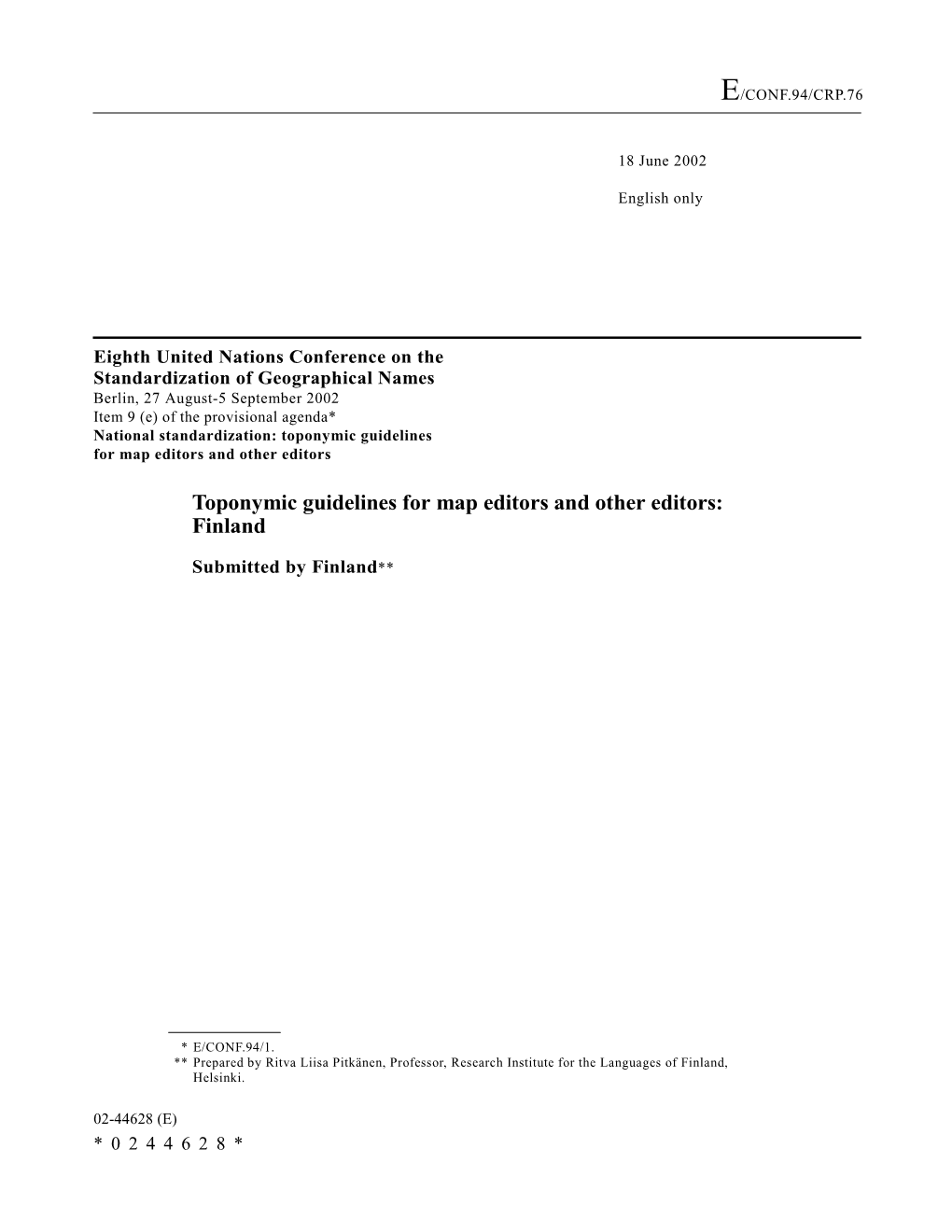 Toponymic Guidelines for Map Editors and Other Editors: Finland