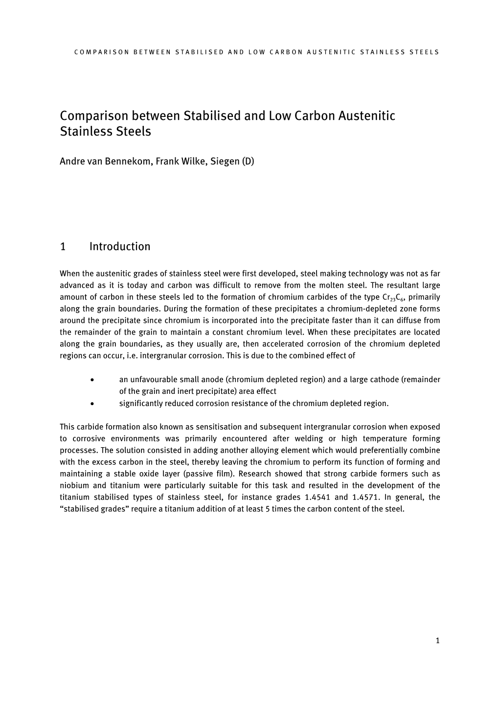 Comparison Between Stabilised and Low Carbon Austenitic Stainless Steels