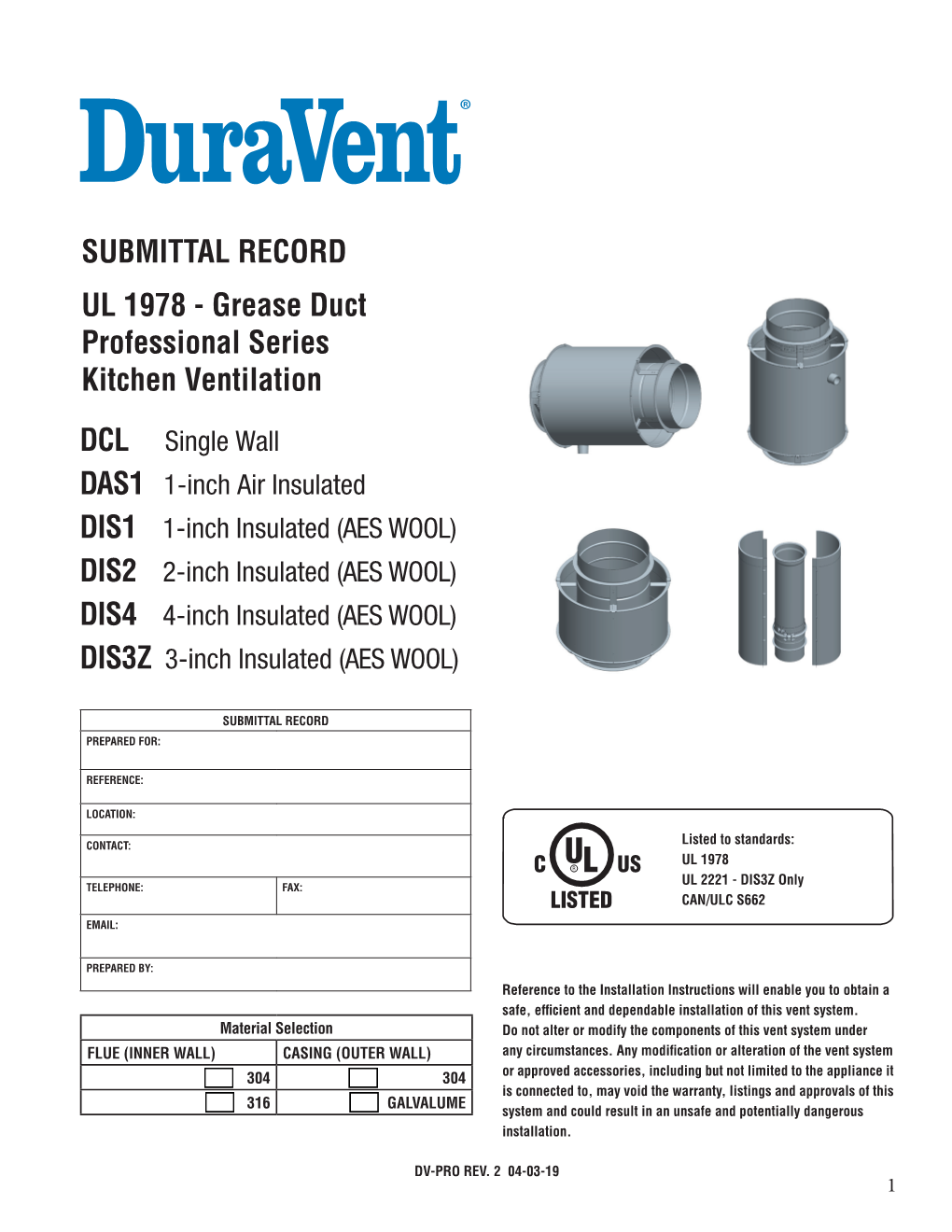 UL 1978 - Grease Duct Professional Series Kitchen Ventilation