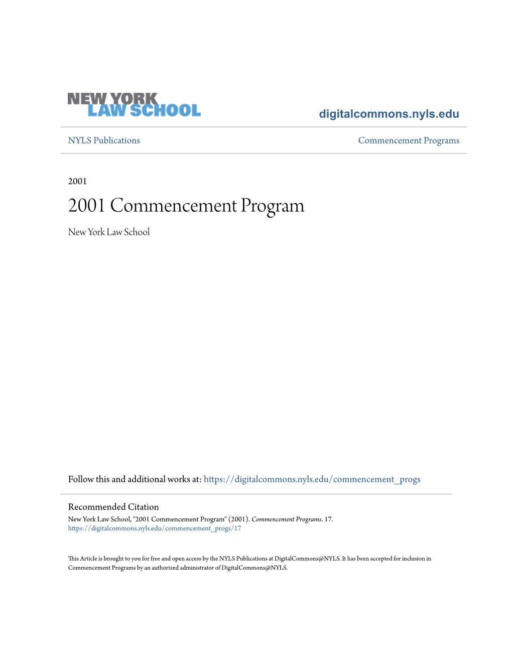 2001 Commencement Program New York Law School