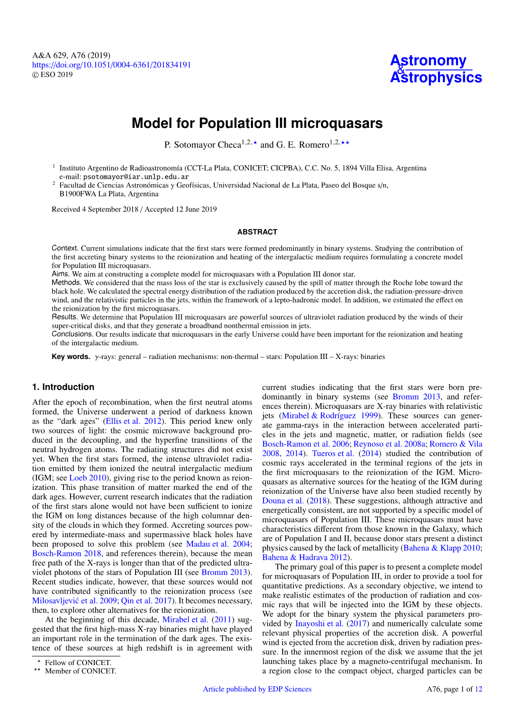 SSRv manuscript No. (will be inserted by the editor) Relativistic Jets in Active Galactic Nuclei and Microquasars Gustavo E. Romero · M. Boettcher · S. Markoff · F. Tavecchio Received: date / Accepted: date Abstract Collimated outflows (jets) appear to be a ubiquitous phenomenon associated with the accretion of material onto a compact object. Despite this ubiquity, many fundamental physics aspects of jets are still poorly un- derstood and constrained. These include the mechanism of launching and accelerating jets, the connection between these processes and the nature of the accretion flow, and the role of magnetic fields; the physics responsible for the collimation of jets over tens of thousands to even millions of gravi- tational radii of the central accreting object; the matter content of jets; the location of the region(s) accelerating particles to TeV (possibly even PeV and EeV) energies (as evidenced by γ-ray emission observed from many jet sources) and the physical processes responsible for this particle accelera- tion; the radiative processes giving rise to the observed multi-wavelength emission; and the topology of magnetic fields and their role in the jet colli- mation and particle acceleration processes. This chapter reviews the main knowns and unknowns in our current understanding of relativistic jets, in the context of the main model ingredients for Galactic and extragalactic jet sources. It discusses aspects specific to active Galactic nuclei (especially Gustavo E. Romero Instituto Argentino de Radioastronoma (IAR), C.C. No. 5, 1894, Buenos Aires, Argentina E-mail: [email protected] M. Boettcher Centre for Space Research, Private Bag X6001, North-West University, Potchef- stroom, 2520, South Africa E-mail: [email protected] S. -