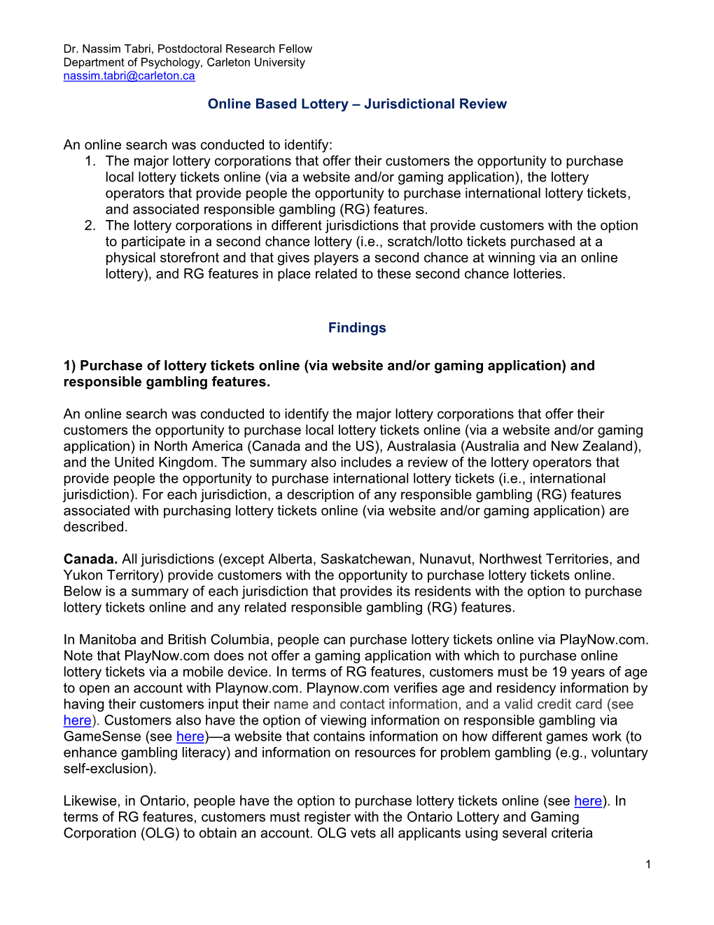 Online Based Lottery – Jurisdictional Review