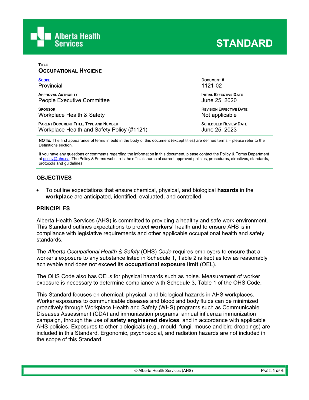 OCCUPATIONAL HYGIENE Standard 1121-02