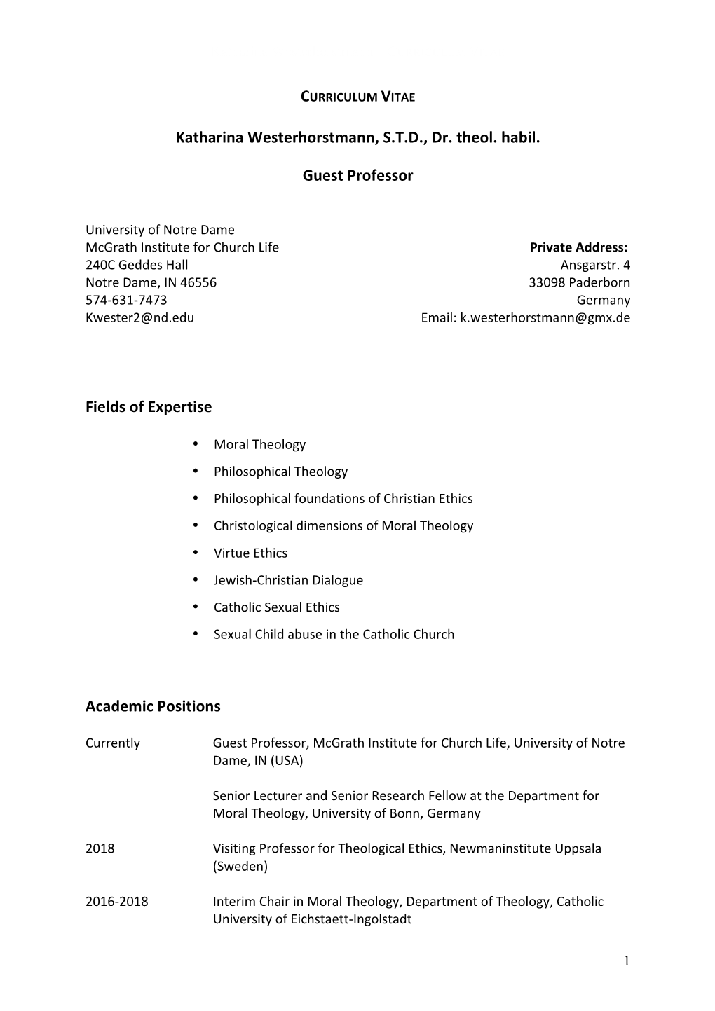 Katharina Westerhorstmann, S.T.D., Dr. Theol. Habil. Guest Professor