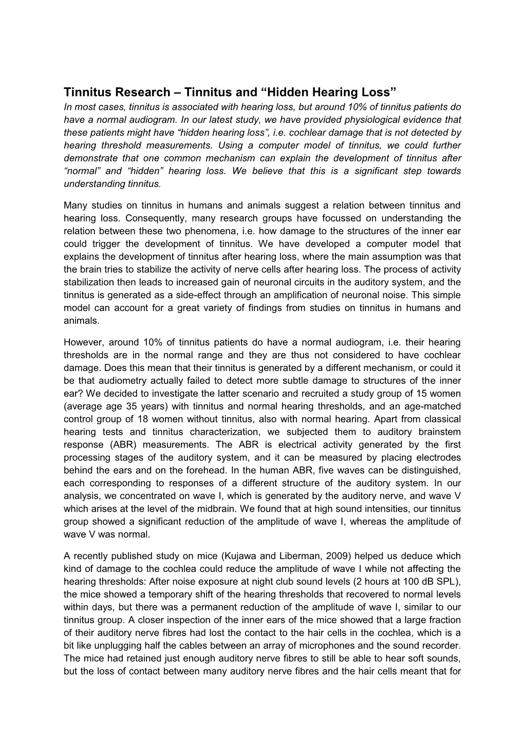 Tinnitus Research – Tinnitus and “Hidden Hearing Loss”
