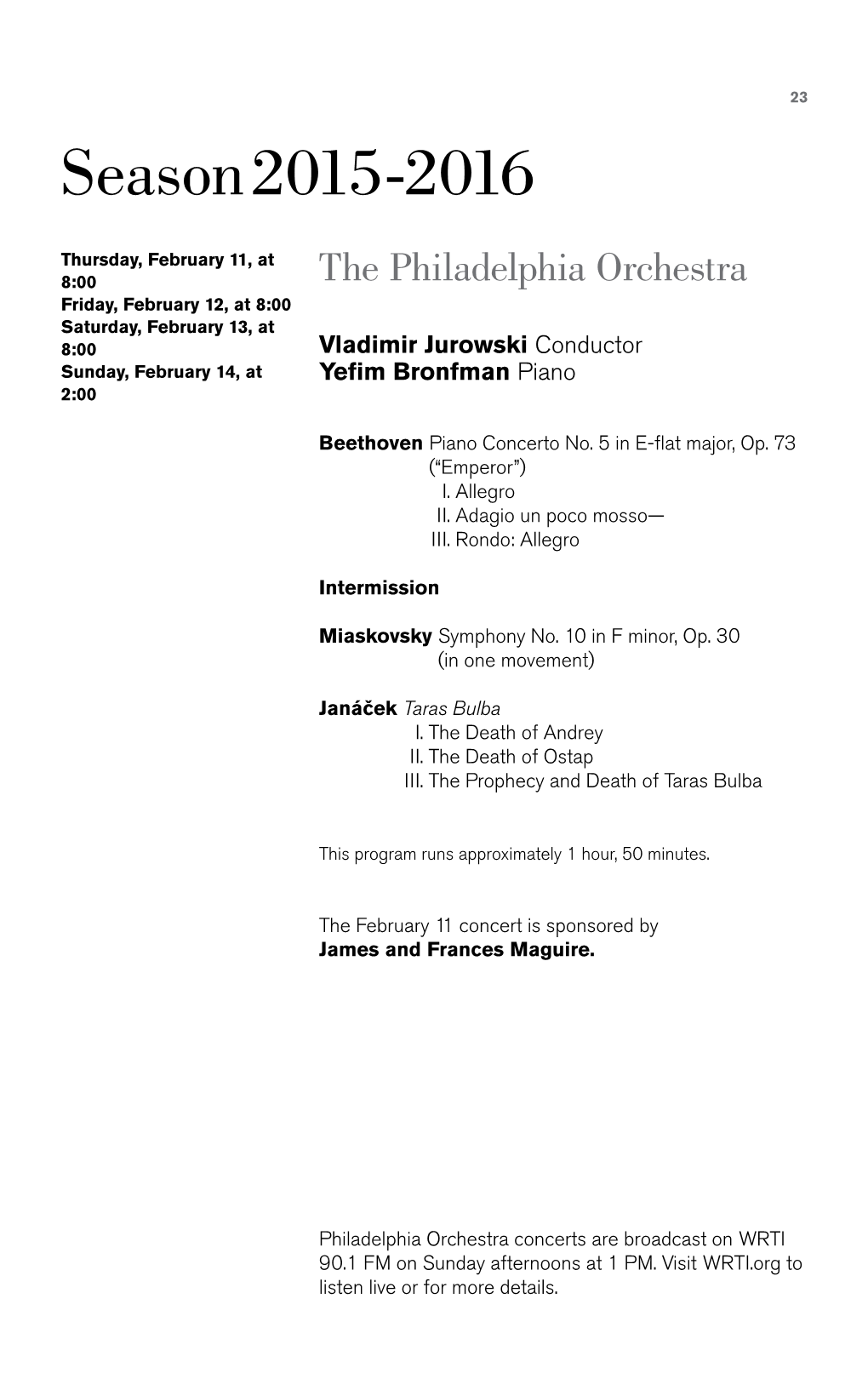 San Francisco Symphony 2019–2020 Season Concert Calendar