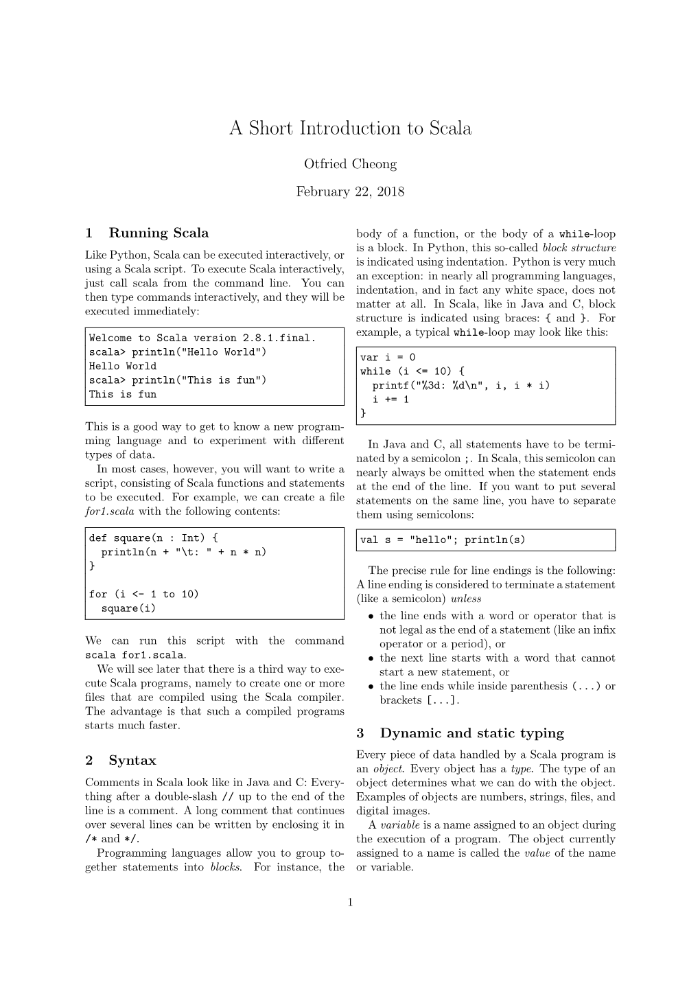 A Short Introduction to Scala