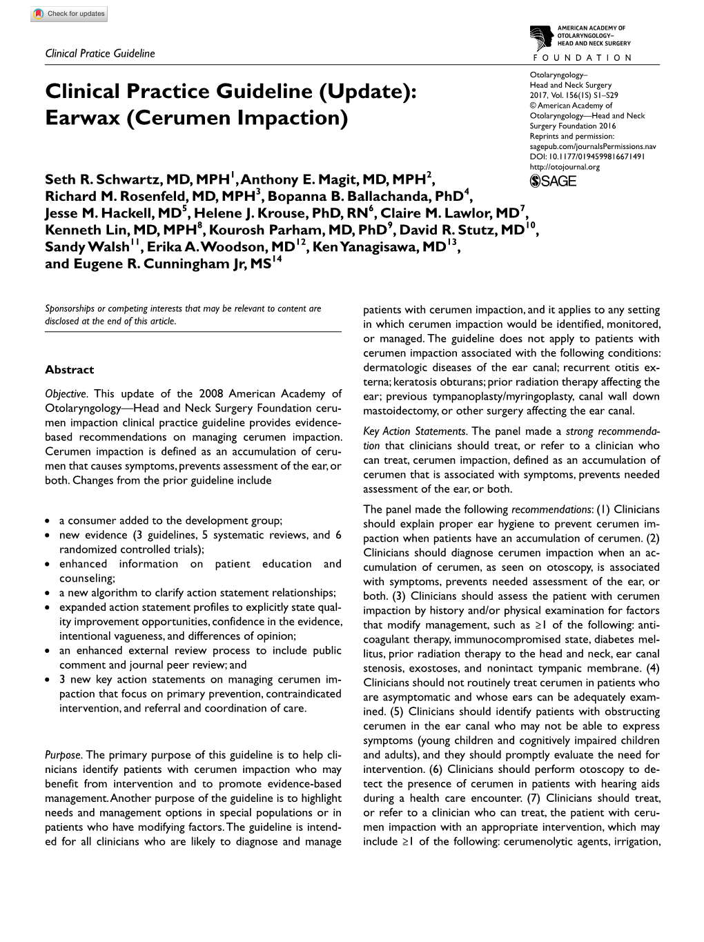 Clinical Practice Guideline (Update): Earwax (Cerumen Impaction)