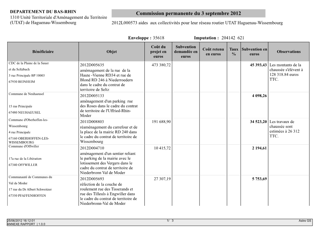 Commission Permanente Du 3 Septembre 2012