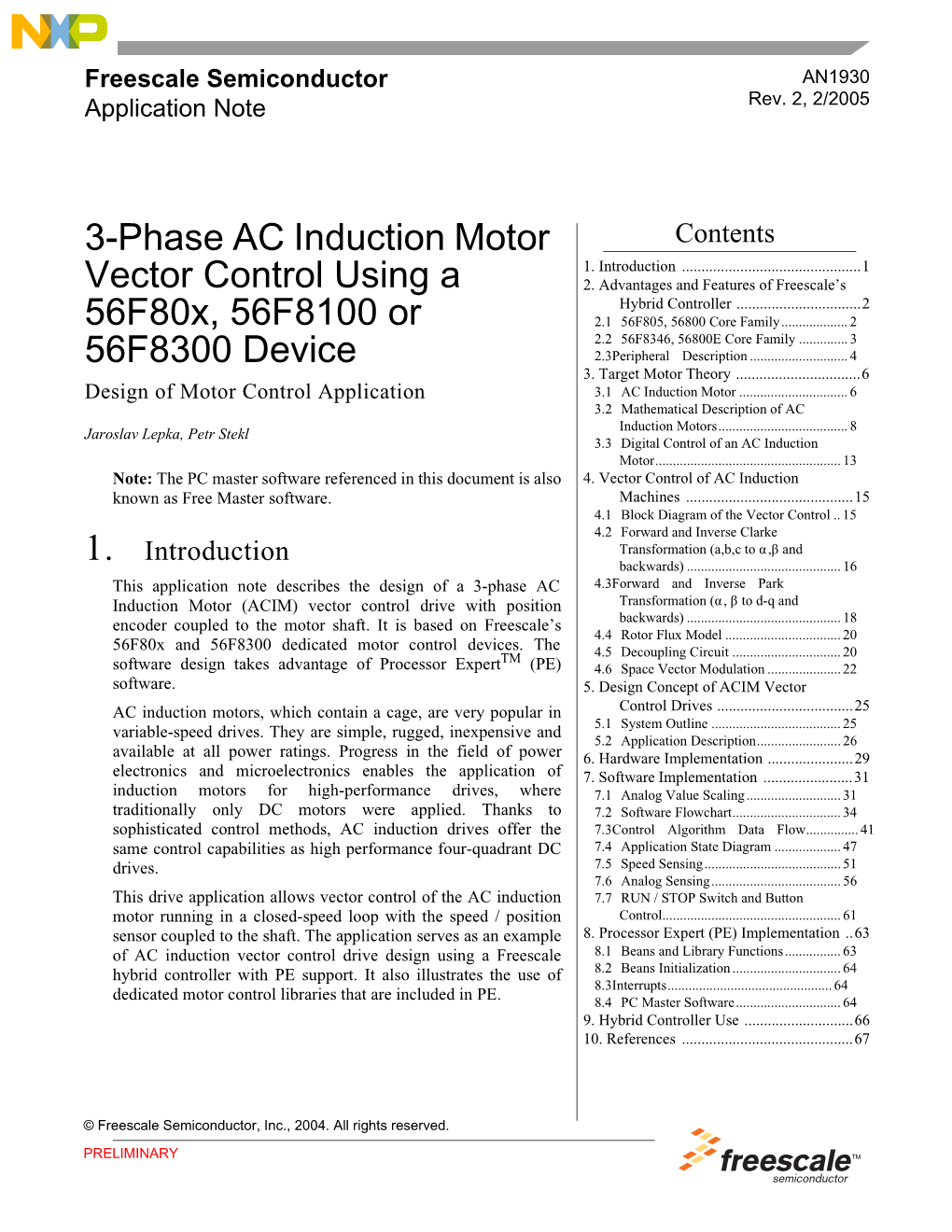 3-Phase AC Induction Motor Vector Control Using Dsp56f80x