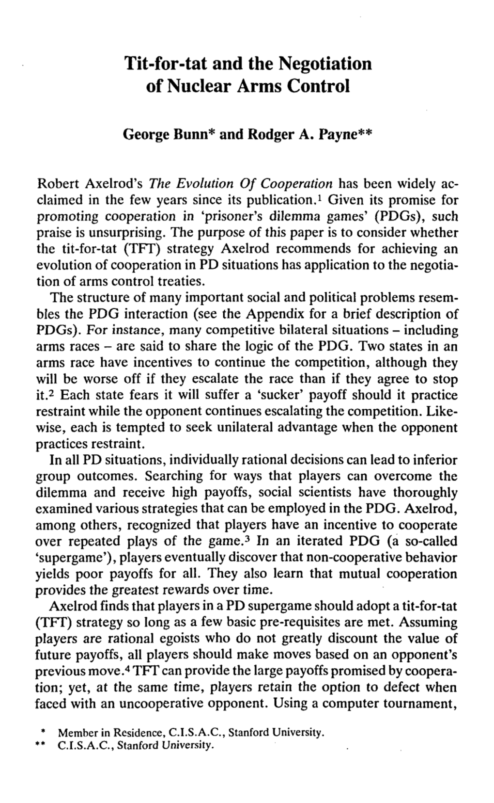 Tit-For-Tat and the Negotiation of Nuclear Arms Control