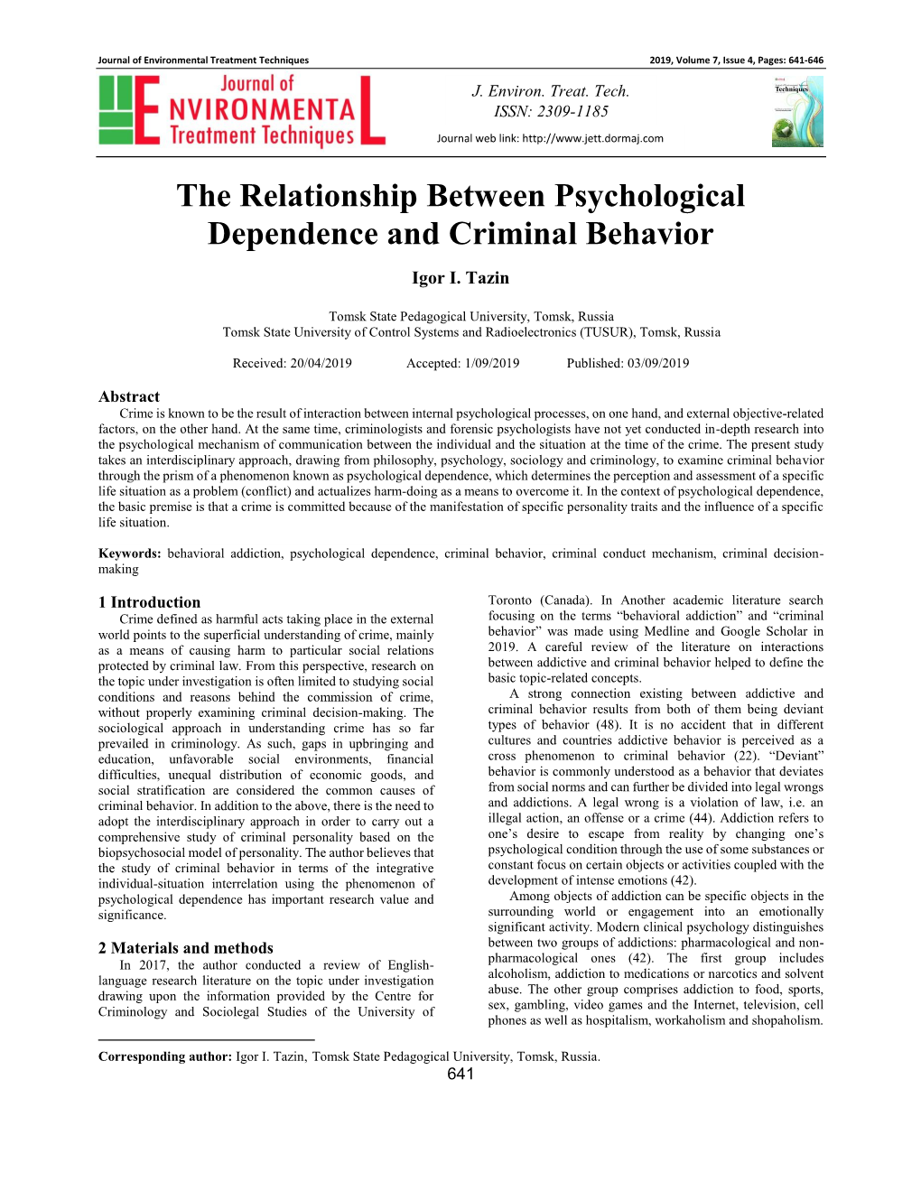 The Relationship Between Psychological Dependence and Criminal Behavior