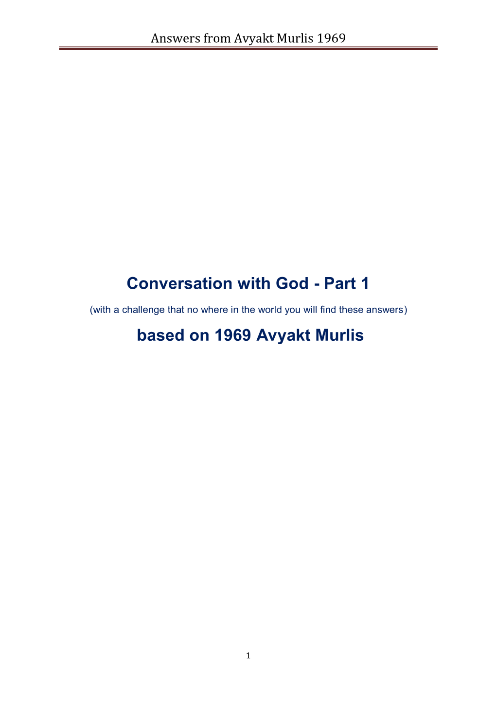 Answers from Avyakt Murlis 1969