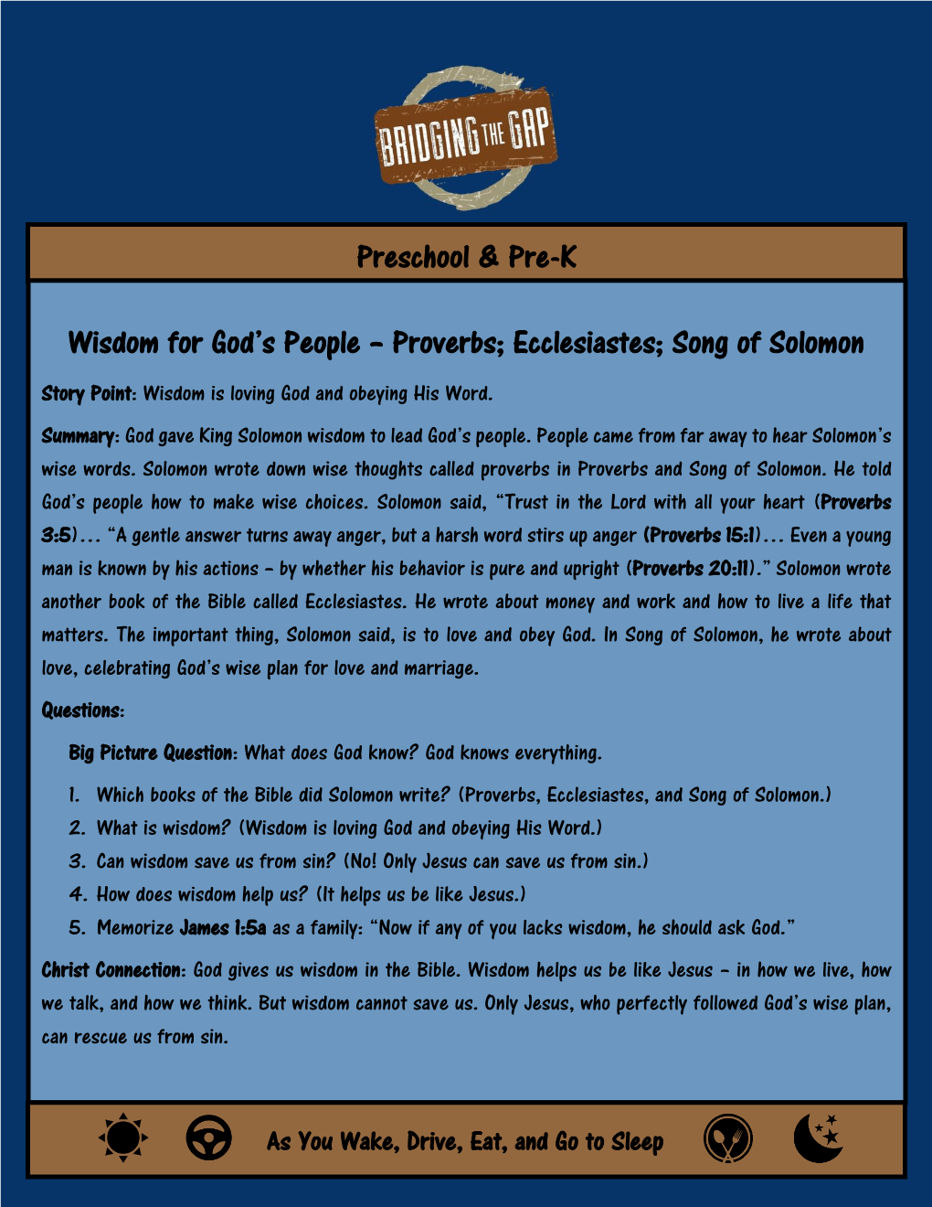 Preschool & Pre-K Wisdom for God's People – Proverbs; Ecclesiastes