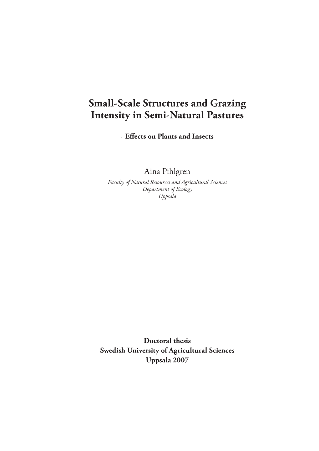 Small-Scale Structures and Grazing Intensity in Semi-Natural Pastures