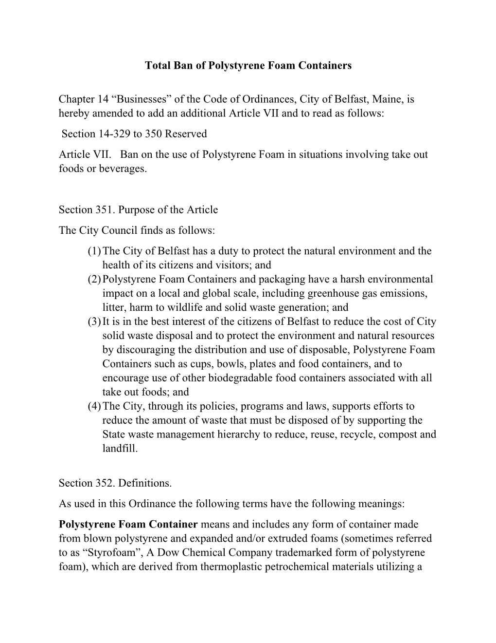 Total Ban of Polystyrene Foam Containers Chapter