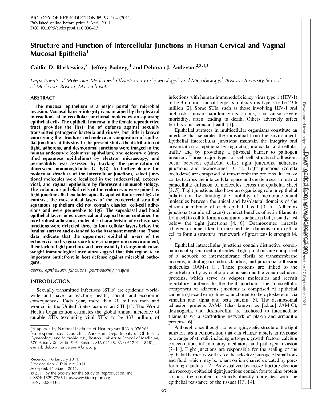 Structure and Function of Intercellular Junctions in Human Cervical and Vaginal Mucosal Epithelia1