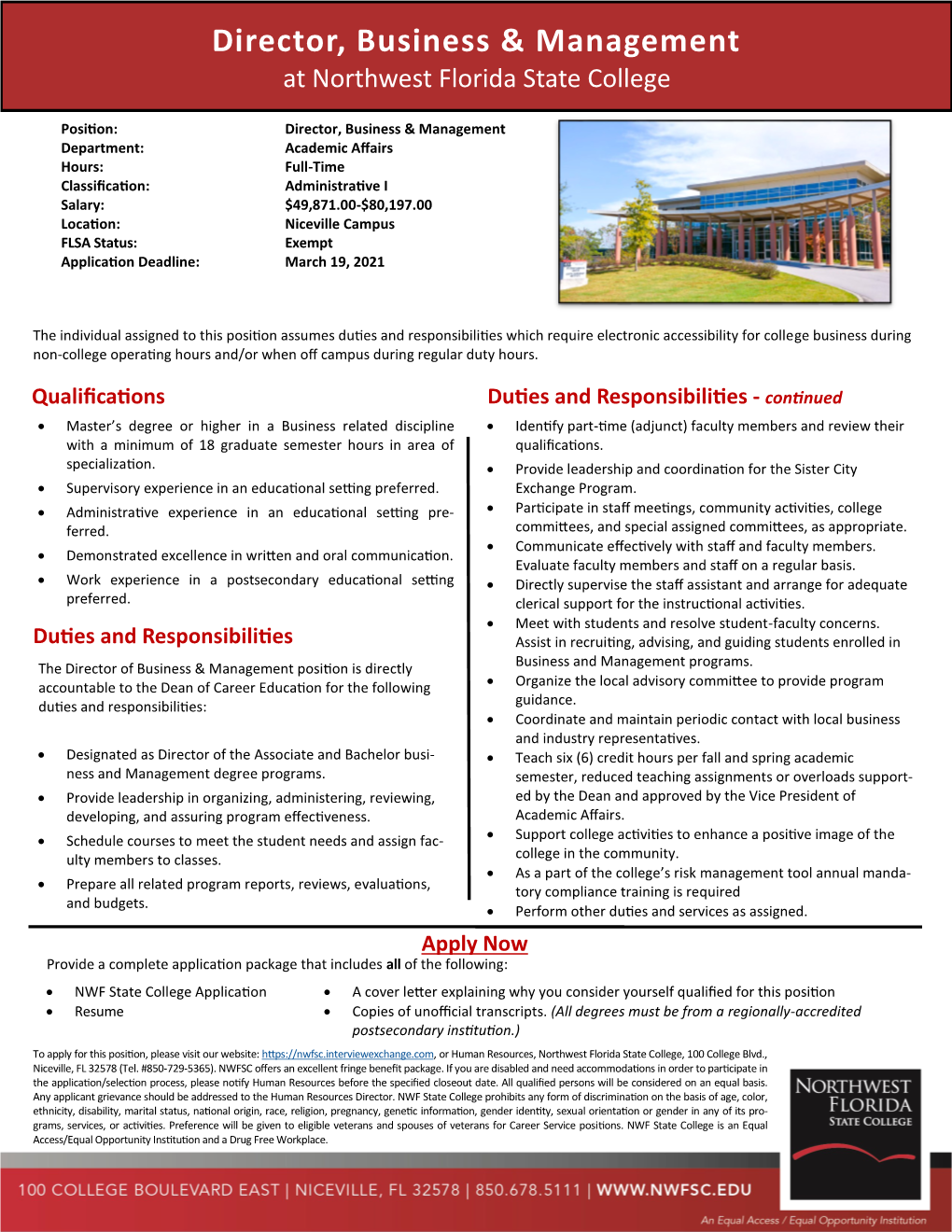 Ohlone Community College District January 2013 DIRECTOR, BUSINESS SERVICES DEFINITION: Under administrative direction and reporting to the Vice President of Administrative Services, to plan, organize and supervise the operations and staff of the college's business office including accounting, budgeting, finance, and payroll; to manage and perform responsible professional accounting tasks including maintenance of the general ledger, preparation of financial reports and records, reconciliation of a variety of accounts, and cash flow analysis; to direct the development, preparation and monitoring of the college's budgets; and to perform related duties as assigned. DISTINGUISHING CHARACTERISTICS: This is a single position management classification accountable for the college's accounting, budgeting, finance and payroll functions, and supervising or personally performing a variety of responsible professional accounting work. The position maintains sufficient independence from other offices to insure integrity of financial responsibilities. ESSENTIAL DUTIES: The following duties are typical of those performed by employees in this job title. However, employee may be directed to perform other related duties. · Develops and implements departmental goals and policies, staffing levels, and administers policies and procedures in accordance with Board regulations; · Plans, organizes, schedules, supervises/directs and evaluates the work of all classified business team members in accounting, budgeting, payroll and finance; · Monitors all district budgets -